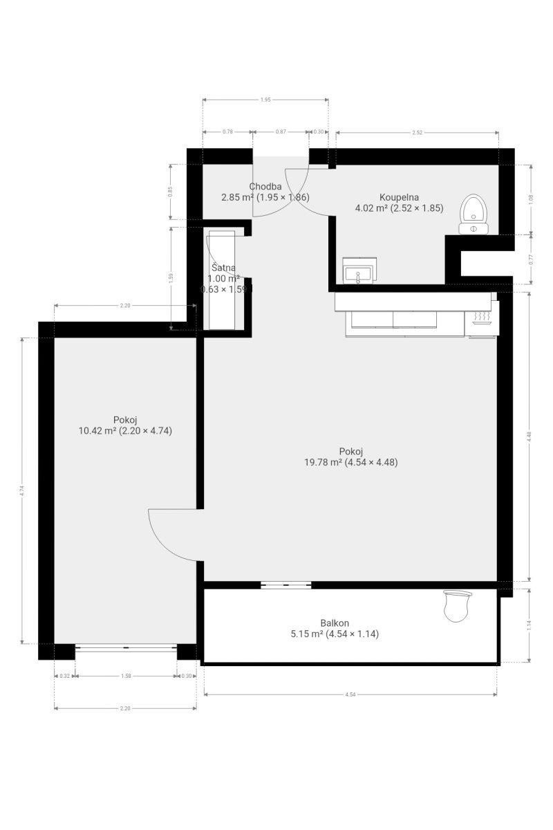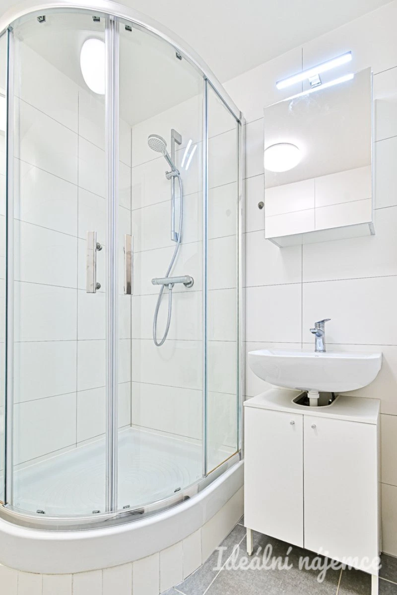 Byt je po kompletní rekonstrukci, tudíž nabízí výhodu prvního podnájemníka. Byt se nabízí vybavený dle fotografií. Kuchyně disponuje elektrickou troubou, varnou deskou a digestoří. Koupelna je zařízena sprchovým koutem, umyvadlem s praktickou skříňkou a toaletou. Výhodou je taktéž menší šatna na úschovu věcí a to přímo v bytě.
