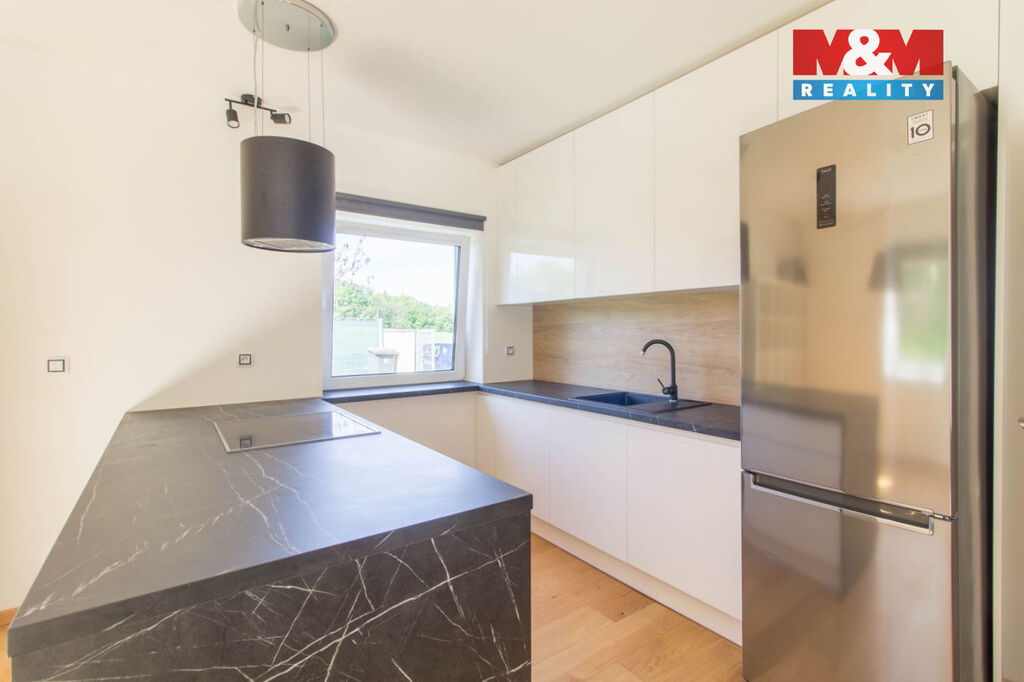 Nabízíme k prodeji novostavbu rodinného domu s dispozicí 3+kk o ploše 103 m2 nacházející se v klidné části Horoměřic. Dům stojí na pozemku o celkové rozloze 603 m2 a vjezd na pozemek zabezpečuje elektrická brána na dálkové ovládání. V přízemí se nachází předsíň s dřevěnými schody do patra, toaleta a obývací pokoj s kuchyňským koutem. Z obývacího pokoje je vstup na terasu. V druhém podlaží jsou dva samostatné pokoje a koupelna se sprchovým koutem a toaletou. Dům je vybaven kuchyňskou linkou. Dvě parkovací místa přímo na pozemku. Voda řešená pomocí vlastní studny. Obec má strategickou polohu na okraji metropole, v blízkosti letiště, mezinárodní školy ISP, Prahy 6 i několika přírodních parků. Do centra Prahy se pohodlně dostanete za 20 minut. MHD doprava: 10 minut metro Bořislavka (linka A), 30 minut Václavské náměstí. Veškerá občanská vybavenost v místě bydliště. Doporučujeme prohlídku. Více informací u makléře
