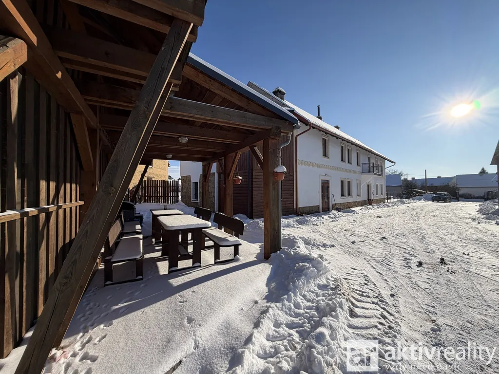 Naproti obytné části se nacházejí dvě hospodářské budovy – menší a větší chlévy, které jsou v dobrém technickém stavu. Větší chlév má přibližně 320 m², menší okolo 35 m². Obě stavby mají pevné zdivo, jsou suché a stabilní, a nad nimi se rozkládá rozsáhlý půdní prostor vhodný pro skladování nebo další využití. Na stodolu dále navazuje vysoký otevřený přístřešek o ploše přibližně 122 m², který nabízí další prostor například pro techniku či materiál.