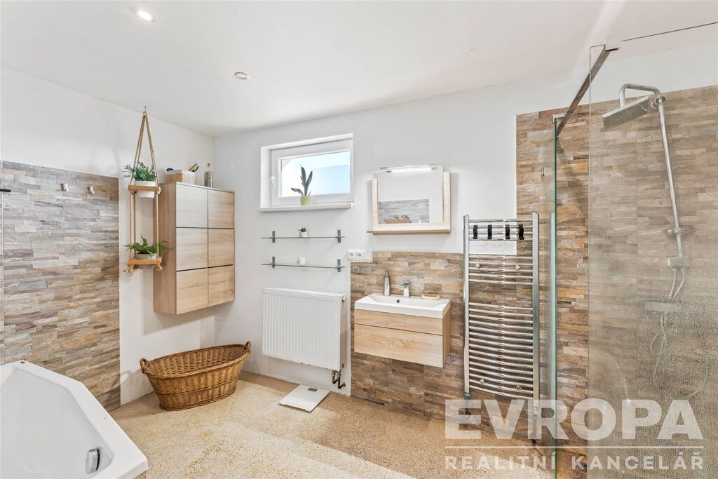 K domu je napojena starší stavba, která je připravena na demolici a nebo k rekonstrukci. Je propojena s domem dveřmi z haly a je zde příprava na prodloužení topení a případné připojení krbových kamen. Dům prošel rekonstrukcí s využitím dotačního programu Zelená úsporám, tedy splňuje veškeré podmínky pro čerpání dotací.