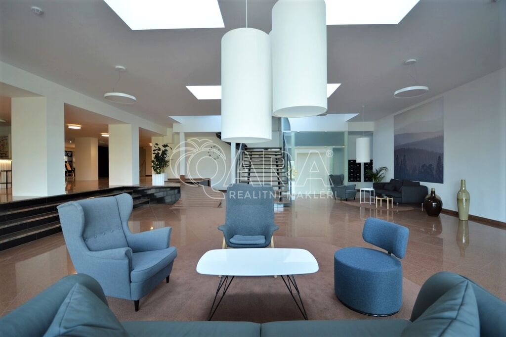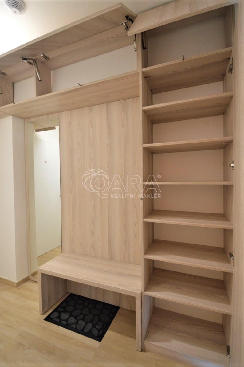 Světlé a příjemné 1+1 se sklepem a s celkovou výměrou 31,8 m2, se nachází v pátém patře domu s výtahem v unikátním projektu V bloku, ulice Peroutkova, Praha 5, Jinonice. Nabízí samostatný pokoj s vestavěnou skříní a rozkládací pohovkou, průchozí pokoj s kuchyňským koutem, jídelním stolem a židlemi, předsíň s úložnými prostory, koupelnu s vanou a toaletou. Orientace na západ s otevřeným výhledem do zeleně. Vestavěná kuchyňská linka na míru, zařízená kvalitními spotřebiči, indukční deska, odsávací digestoř, lednice s mrazákem, myčka a mikrovlnka. K dispozici je sklep 1,2 m2.