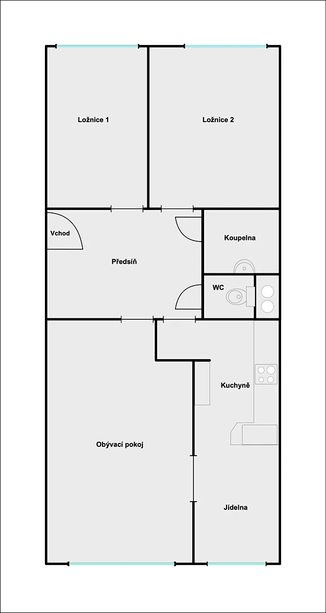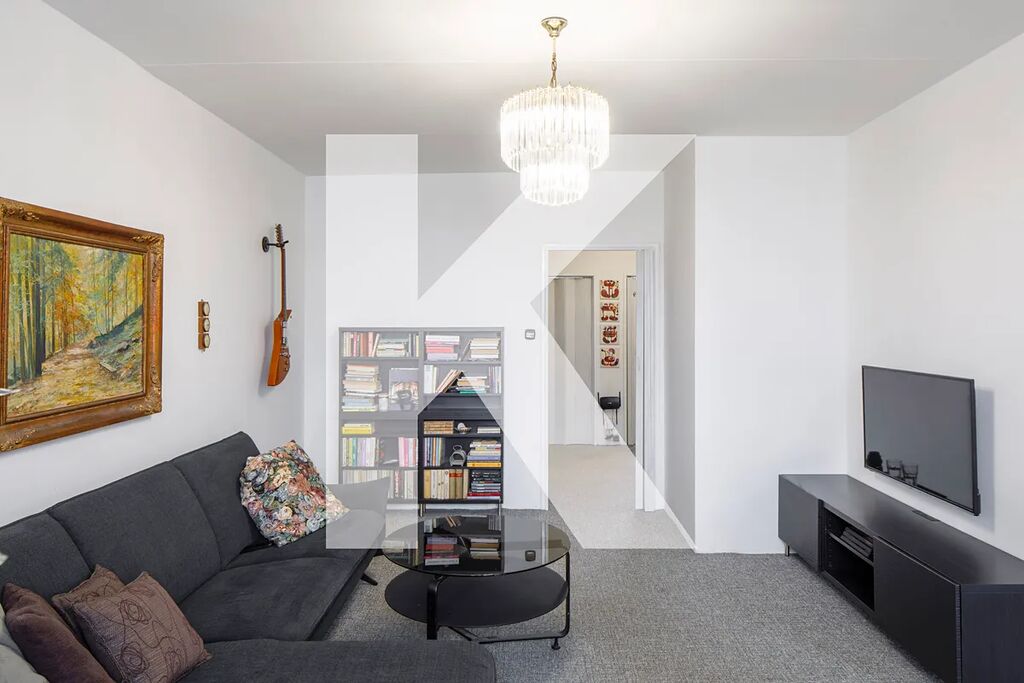 V roce 2021 prošel byt částečnou rekonstrukcí (koupelna, okna, dveře, podlahy). Dispozice nabízí obývací pokoj a kuchyň orientované do zeleně a ložnici s dalším pokojem situované do ulice. K tomu přináleží prostorná předsíň, koupelna a samostatná toaleta. Díky orientaci oken na dvě světové strany je byt celodenně prosvětlený a zároveň dobře větratelný.