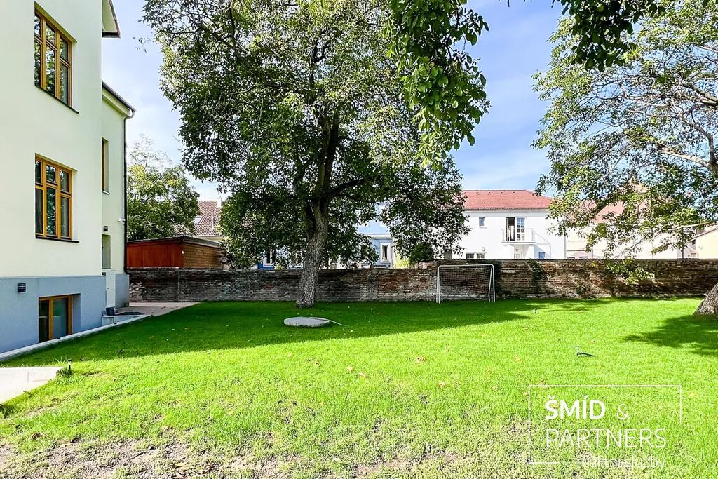Tento byt má výhled jak do zahrady, která je stejně jako sauna k dispozici všem vlastníkům jednotek, tak do poklidné ulice. Byt je prostorný a díky velkým oknům a světlému interiéru příjemně prosluněný. Je zde jasně vidět spolupráce s architektkou, vznikl velice vkusný a praktický byt, kde je dětský pokoj, obývací pokoj, ložnice, krásná kuchyň, koupelna a WC. Nejčastěji používaný materiál je zde dřevo, vč. podlahové krytiny, díky tomu působí byt příjemným a teplým dojmem. Celkově byl při rekonstrukci domu kladen důraz na kvalitu použitých materiálů.