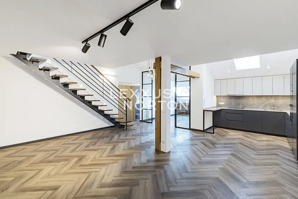 Elegantní mezonet v prestižní části historického centra Prahy, spojující prvotřídní design s precizními detaily.