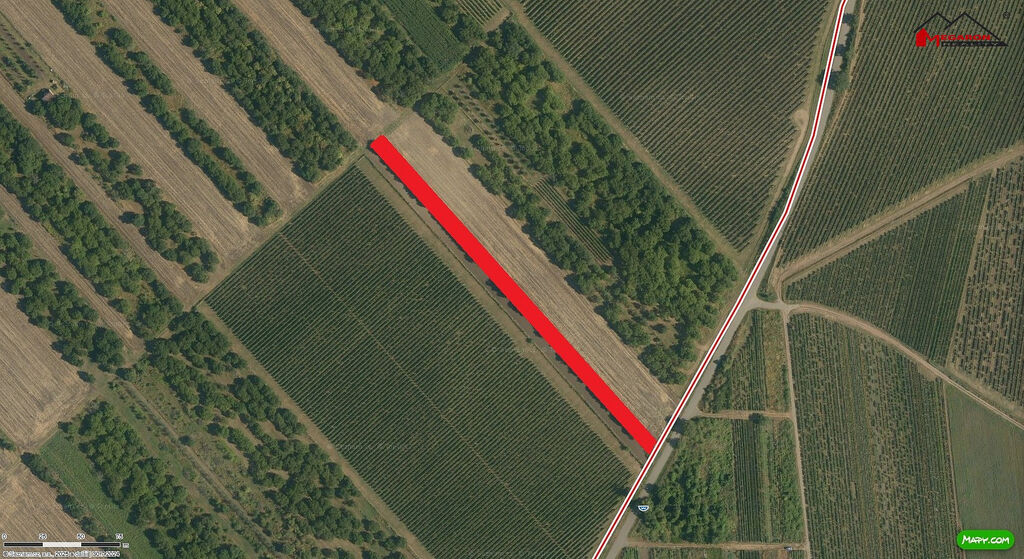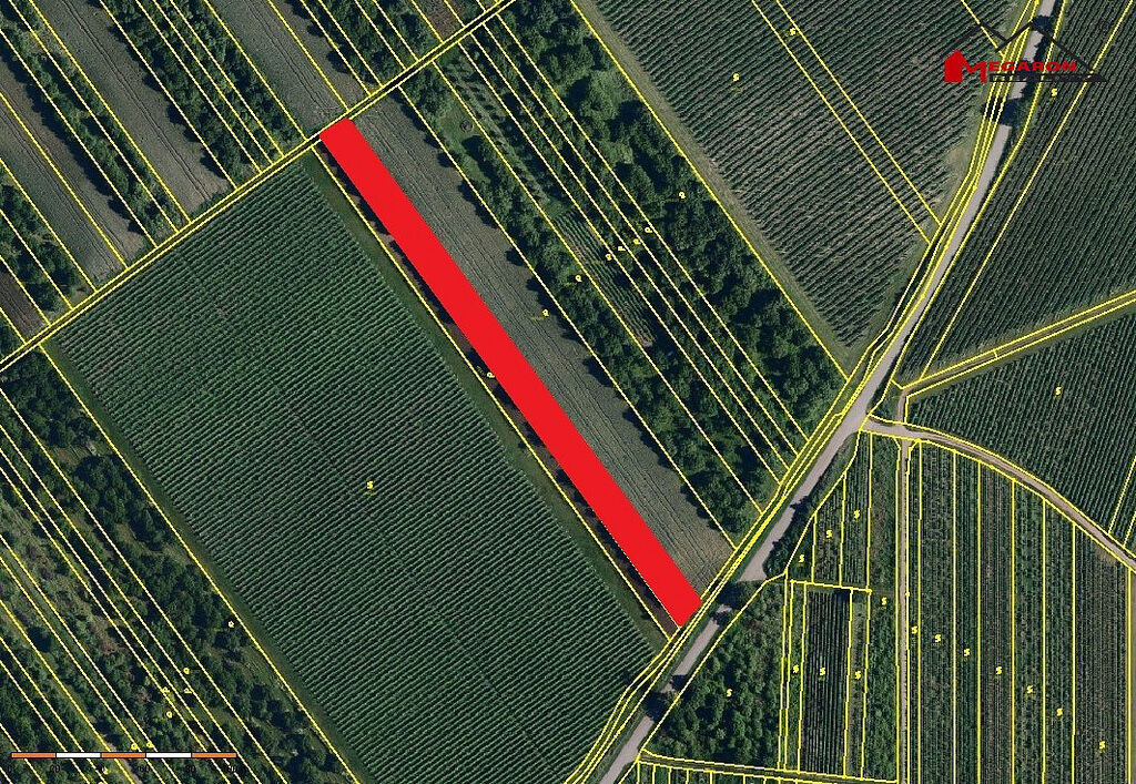Na pozemku je 56 starších ovocných stromů – meruňka. K pozemku vede asfaltová komunikace.