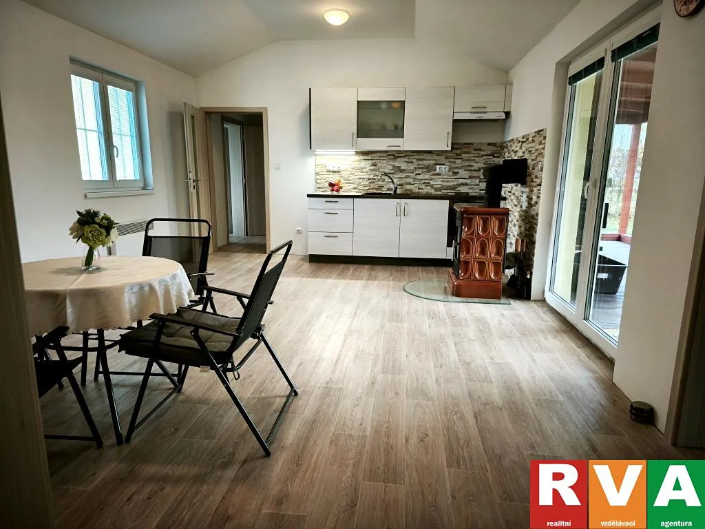 Představujeme čerstvě zabydlenou novostavbu rodinného domu v Chodové Plané, Výškovské ulici. Tato dřevostavba o dispozici 3+kk s velkou terasou byla kolaudována v prosinci r. 2022, v letošním roce byla dokončena fasáda, terasa, venkovní dláždění a terénní úpravy. Přízemní domek o zastavěné ploše 86 m2 + terasa cca 16 m2 má praktickou dispozici bez zbytečných chodeb a nabízí pohodlné a moderní bydlení pro menší rodinu. Vzhledem k tomu, že ke vchodu vedou jen 2 schody a celý interiér je bezbariérový, je vhodný i pro starší nebo hůře pohyblivé osoby. Za vchodovými dveřmi je dostatečně velké zádveří, dále malá chodbička se vstupem do koupelny s toaletou a do velkého obývacího pokoje s kuchyňským koutem (cca 24 m2). Z obývacího pokoje vedou dveře do ložnice (cca 12 m2) a menšího pokoje (cca 10 m2), a také prosklenými dveřmi na prostornou terasu. Terasa je zastřešená a z velké části zakrytá, aby byla chráněna před povětrnostními vlivy, takže výrazně zvětšuje obytnou plochu. Přes terasu je přístup i z domu na zahradu. Dům může být vytápěn elektrickými přímotopy umístěnými ve všech místnostech, ale tepelnou pohodu i příjemnou atmosféru domácnosti spolehlivě navodí vysoce výhřevná kachlová kamna umístěná v obývacím pokoji. Dům je napojen na obecní vodovod i kanalizaci, na zahradě je retenční nádrž pro využití dešťové vody. Domek má energetickou třídu B (velmi úsporná) a provoz domu je opravdu finančně nenáročný.