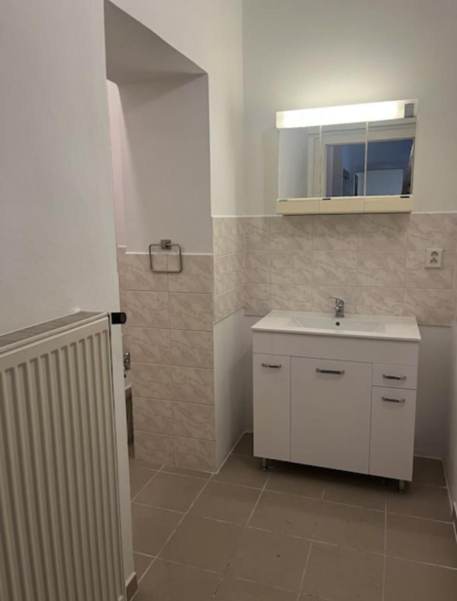 Interiér je po rekonstrukci, s krásnými dřevěnými parketami a vysokými stropy. Velká okna zajišťují příjemně prosvětlený prostor po celý den. Byt působí otevřeně, vzdušně a je vhodný pro jednotlivce, pár nebo i dva spolubydlící.