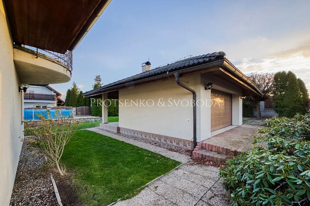 Užitná plocha domu činí 296 m², k dispozici je terasa, samostatná dvojgaráž (49 m²) a krásná zahrada o rozloze 958 m² se vzrostlou zelení.