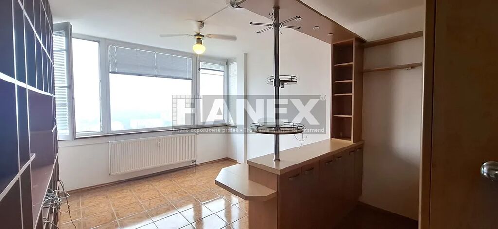 Volné od poloviny února 2026. Nabízíme na pronájem pěkný nezařízený byt 2+kk o velikosti 32,7 m2 s úchvatným panoramatickým výhledem na Prahu včetně Pražského hradu. Jednotka se nachází v 18. patře s rychlovýtahy a nonstop recepcí. Vstup do budovy na čip. Byt se skládá z obývacího pokoje s kuchyňskou linkou se snídaňovým barem, ložnice, koupelny se sprchovým koutem a samostatné toalety. K bytu náleží sklep. Na podlahách dlažba. Plastová okna se žaluziemi. Kuchyňská linka je vybavena sklokeramickou dvouplotýnkou, elektrickou troubu, myčkou a lednicí s mrazákem.