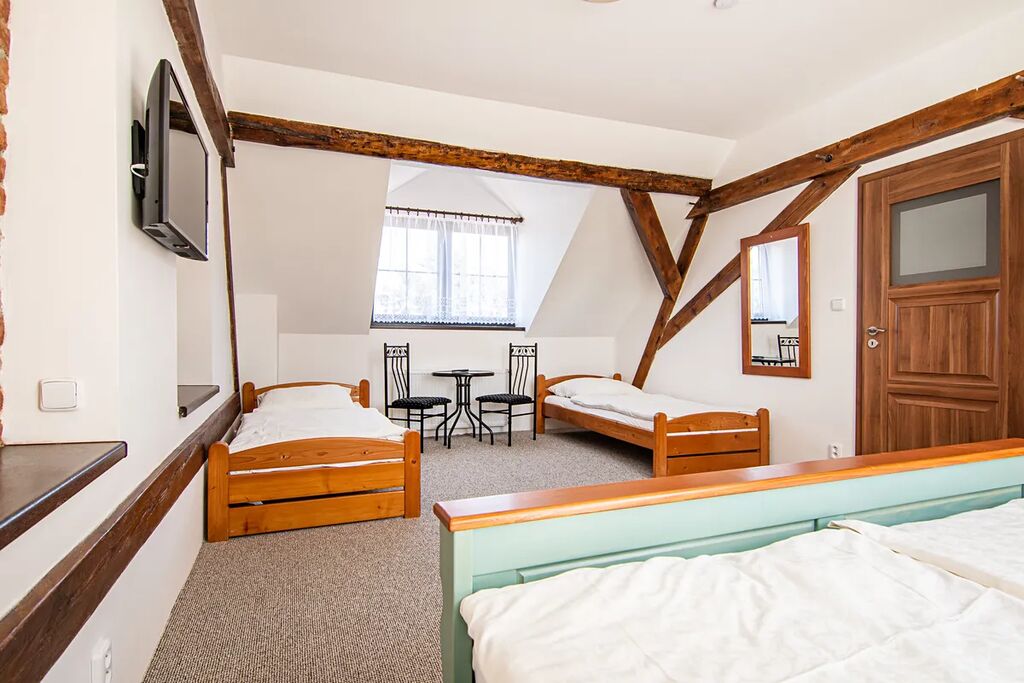 V hlavní budově se nachází ubytovací zařízení s obytnou plochou 198 m², které nabízí 7 komfortních pokojů s vlastním sociálním zařízením. Maximální kapacita ubytování je 16 osob.