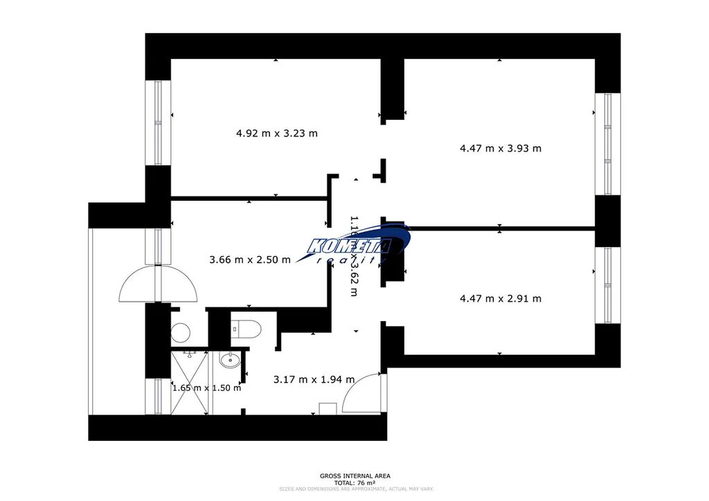 Při rekonstrukci byla pouze ponechána původní podlaha na chodbě a nový majitel si tak může uzpůsobit dle vlastních představ včetně dveří.