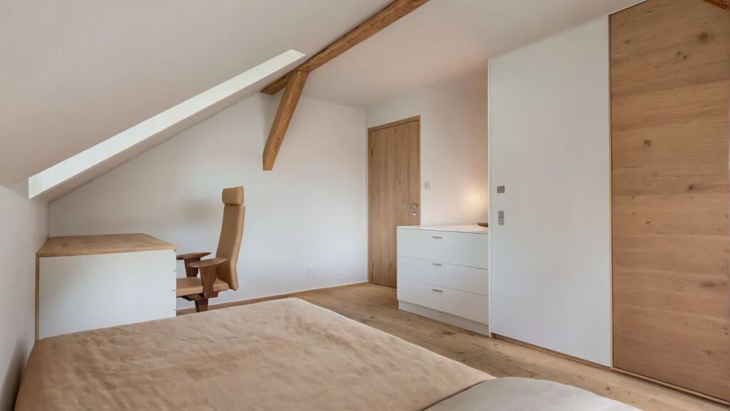 Podkroví nabízí promyšlené dispoziční uspořádání s velkorysým obytným prostorem. Dominantou je pak rozlehlá terasa orientovaná do klidné části, poskytující příjemné místo pro odpočinek i posezení s přáteli.