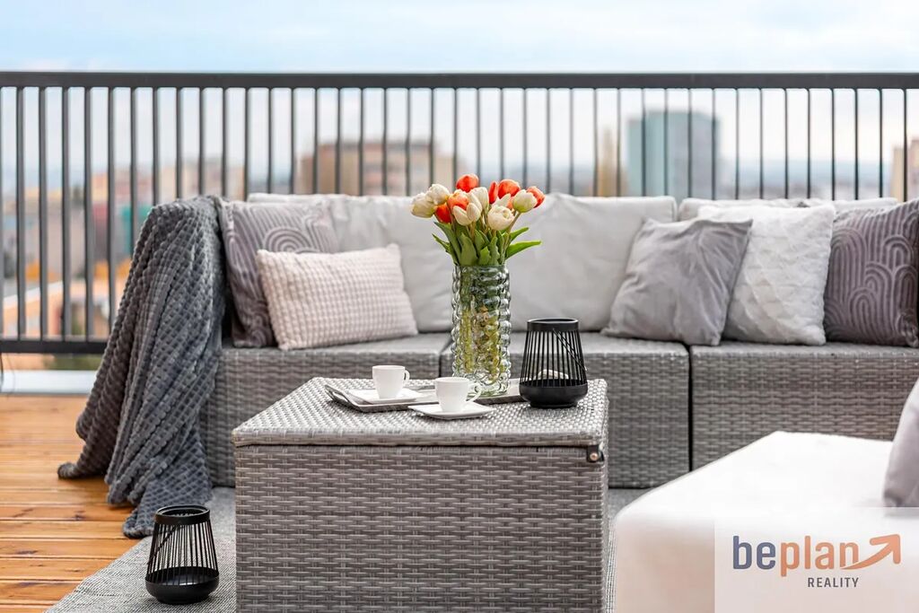 We are delighted to present this exclusive penthouse located on the top floor, offering maximum privacy, generous space, and beautiful open views of the surrounding area. This modern, newly renovated apartment features a 5+kk layout with a total floor area of 122 m, complemented by a spacious 47 m terrace accessible from several rooms.