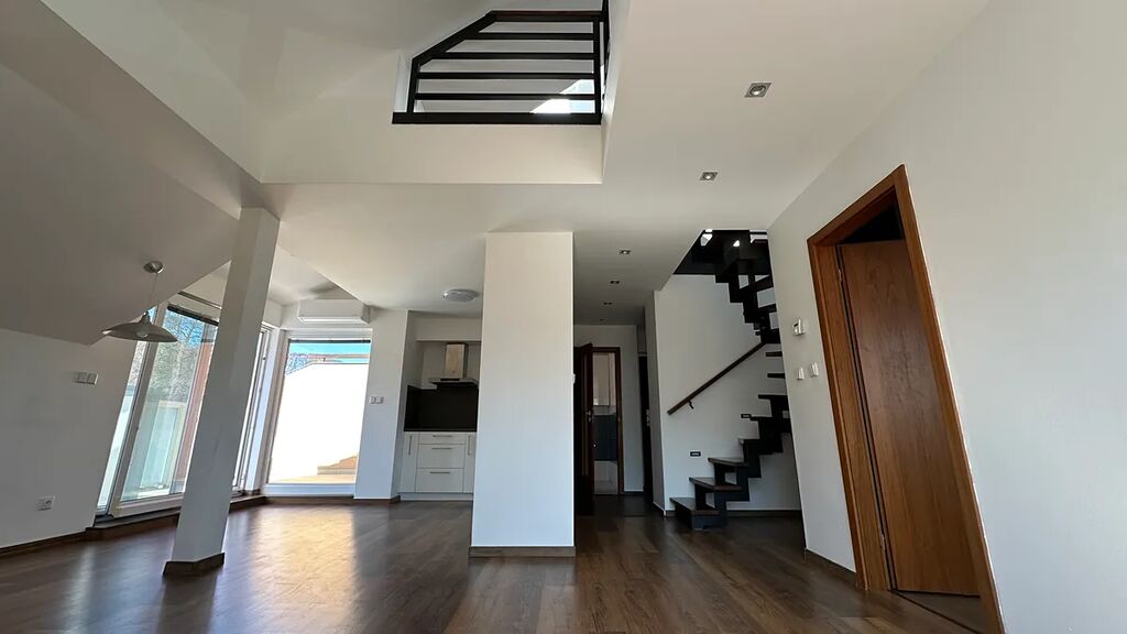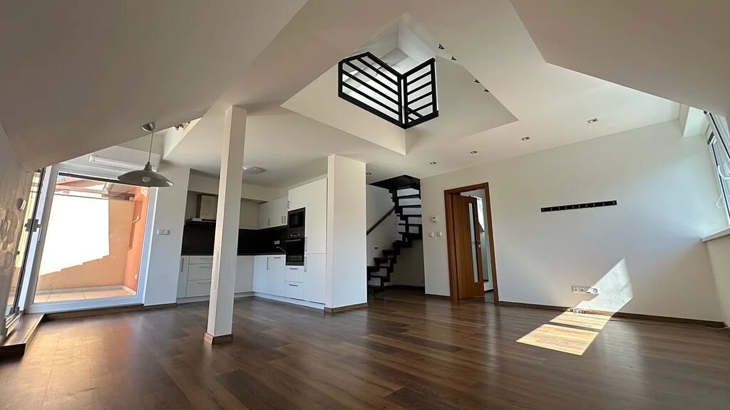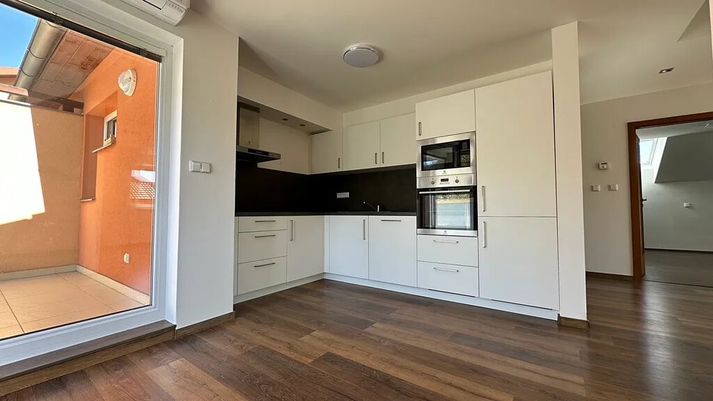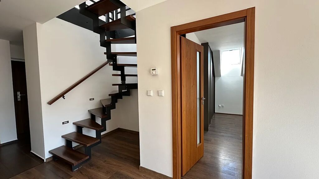 Nabízíme k prodeji krásný, slunný, nově postavený mezonetový byt 4+kk v kompletně zrekonstruovaném zděném domě v příjemné, klidné lokalitě, cca 10 min. pěšky do centra Luhačovic. Dům je zateplený, nízkoenergetický. Byt má plochu 109 m2, zděný sklep s oknem 7,5 m2, slunnou terasu 10 m2 s hezkým výhledem do přírody. Byt má vlastní kotel určený do pasivních staveb, podlahové vytápění, v koupelně navíc žebříkové, v horním patře je klasické topení pod okny. Klimatizace je v obou patrech. Laminátové podlahy, kovové zábradlí, protipožární bezpečnostní dveře, interiérové obložkové dveře SAPELI, LED osvětlení, rozvody TV, internet v každém pokoji. Byt se prodává částečně zařízený - předsíňová stěna se skříní a botníkem ve vstupní chodbě, vestavěná skříň v ložnici, manželská postel, kuchyňská linka s veškerými spotřebiči - trouba, mikrovlnná trouba, indukční varná deska, myčka, lednice.