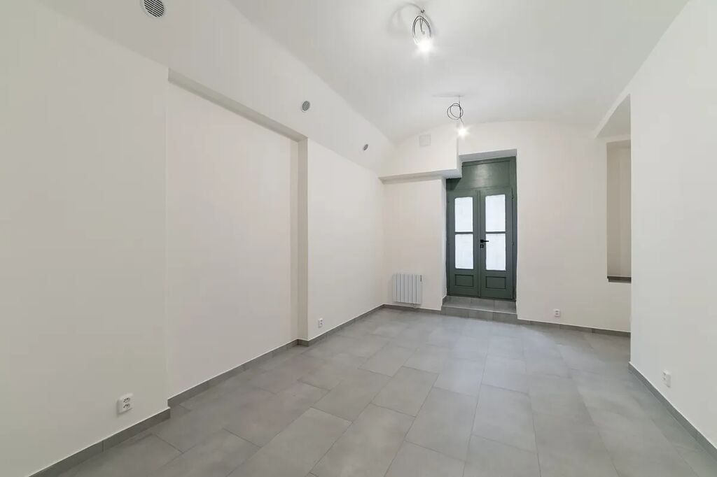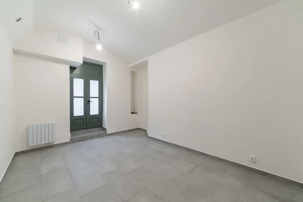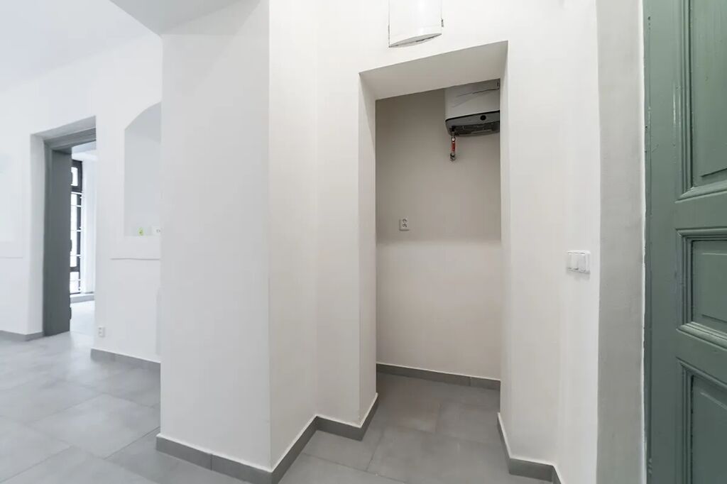 V této chvíli probíhá v prostoru rekonstrukce (nové dveře, topné radiátory, dlažba, elektroinstalace, malá kuchyňka, bojler, bílé stěny).