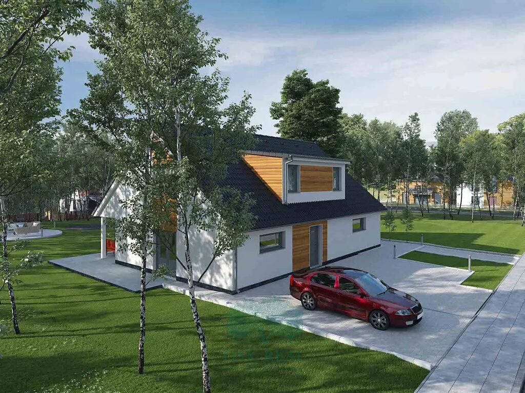 Součástí prodeje je projektová dokumentace pro výstavbu nízkoenergetického rodinného domu. Jedná se o patrový dům s obytným podkrovím s dispozicí 5+1 (podlahová plocha o velikosti 195 m2, zastavěná plocha 146 m2 s částečně zakrytou terasou o velikosti 37 m2). Součástí projektové dokumentace je i platné stavební povolení - lze okamžitě stavět.