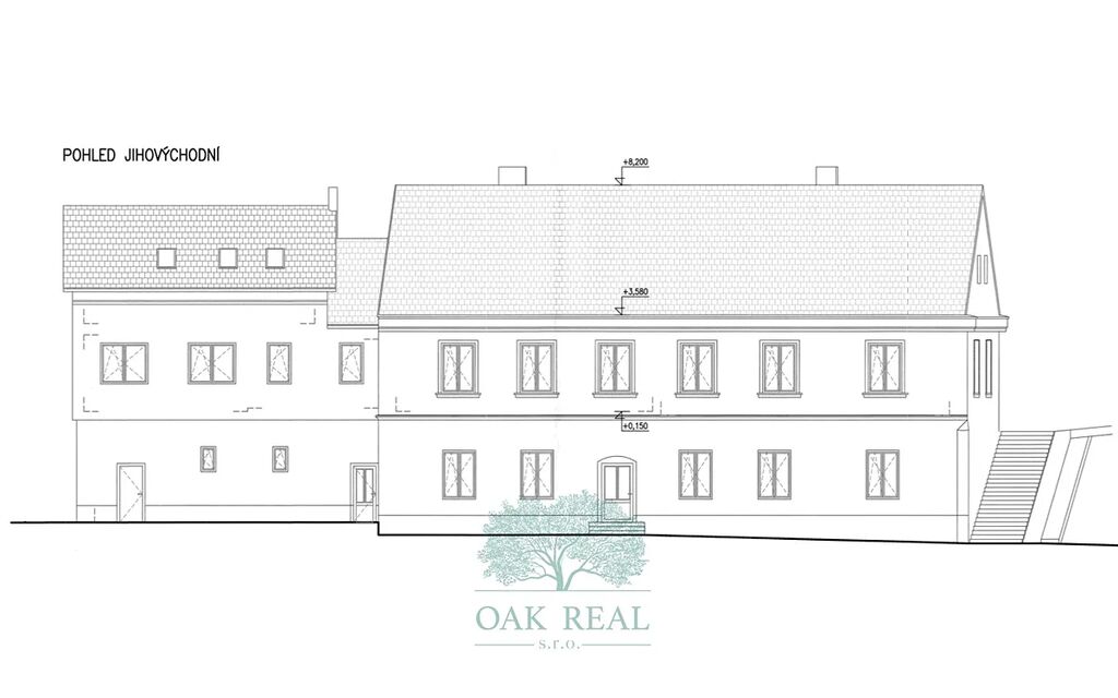 Výhradně si vám dovolujeme nabídnou k prodeji bytový dům před rekonstrukcí se stavebním povolením na břehu Lužnice, jen kousek od historického jádra města Tábor. Jedná se o dva původní dvoupodlažní objekty. Ty jsou aktuálně vyklizené a připravené k rekonstrukci. Součástí ceny je i vydané stavební povolení na kompletní rekonstrukci. Na základě platného stavebního povolení lze v hlavní budově v 2NP vytvořit dva byty s dispozici 2+kk a 3+kk. V 1NP ateliér 2+kk, dvojgaráž, sklepy pro byty a společnou technickou místnost. V samostatném objektu se počítá s mezonetovým bytem 3+kk. Celková obytná plocha je 276 m2, podlahová plocha včetně společných prostor jako jsou sklepy a technická místnost je 405 m2. Hlavní budova má dvě obytná podlaží a novou sedlovou střechu. Ta je vhodná pro případnou další vestavbu. Objekt je napojen na všechny dostupné sítě (elektrika, voda, kanalizace a plyn). Na pozemku se počítá kromě dvojgaráže v budově i se dvěmi parkovacími místy. Celý projekt je umístěn ve svahu a mimo záplavové území. V horní části pozemku může vzniknout malá zahrada s posezením. Projekt je určen pro malé a střední stavební společnosti, které mohou využít připraveného stavebního povolení. Tím mohou realizovat výstavbu nových bytů bez nutnosti řešit složitý inženýrink. V Táboře a jeho okolí se aktuálně nenachází žádný podobný kompaktní projekt v původní zástavbě města. Objekt nelze přestavět a využívat jako ubytovnu. V případě zájmu vám rádi pomůžeme s nalezením vhodného financování. Taktéž vám rádi pomůžeme s následným prodejem bytů a ateliéru. V případě zájmu o osobní prohlídku objektu nebo zaslání prezentace nás neváhejte kontaktovat.