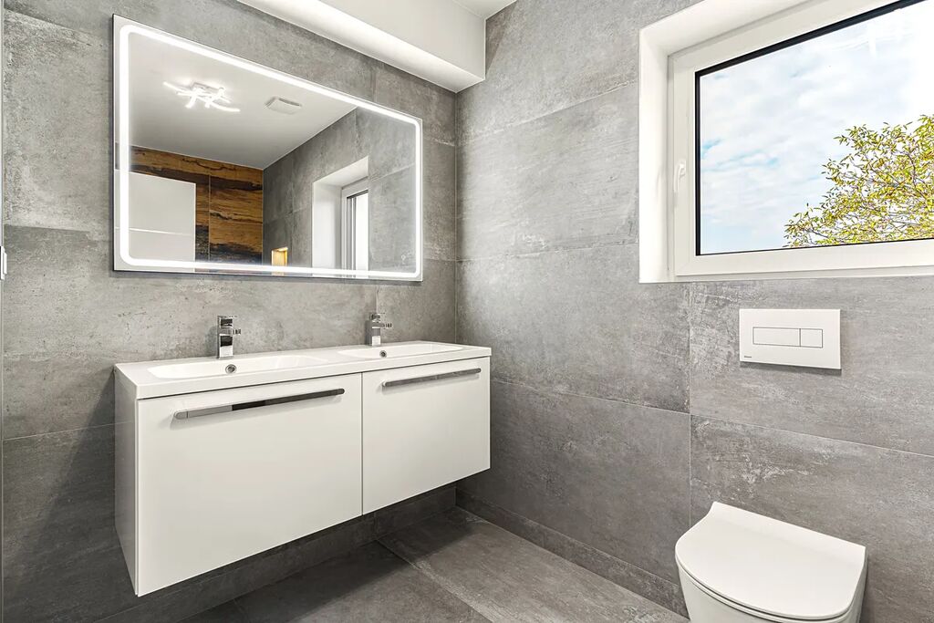 Zdivo Porotherm 30 cm, příčky ytong, stropy panelové betonové, schodiště betonové, vazníková střecha, tašky Benders tmavě šedá, zateplení polystyren 200mm, okna 7komor trojskla, venkovní elektrické hliníkové rolety barva antracit. Tepelné čerpadlo Samsung 12kw - naddimenzováno - provoz na 30-40%, což zaručuje téměř nulový hluk a nízké náklady, podlahové topení v celém domě, termostat v obývacím pokoji pro spodní patro, v prvním patře termostaty ve všech pokojích, vyvložkovaný komín (stačí pouze instalovat kamna). V prvním patře kvalitní vinylová podlaha, v obývacím pokoji v přízemí kvalitní dřevěná podlaha. Interiérové designové dveře Sepos, veškerá sanita v koupelnách zn. Ravak, kvalitní úsporné led osvětlení v celém domě.