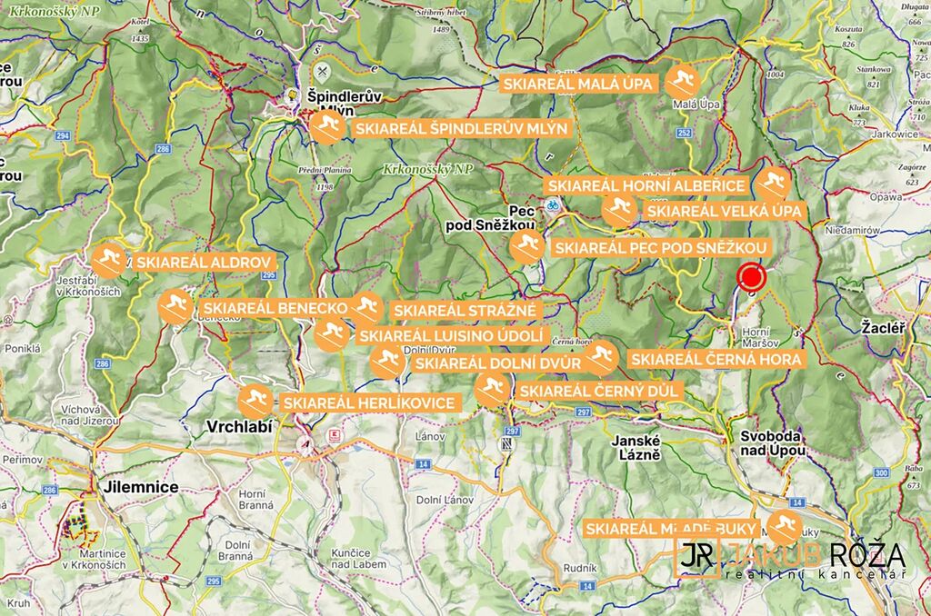 Dolní Lysečiny je ideální místo pro rodinnou i skupinovou rekreaci a skvělé výchozí místo pro letní i zimní aktivity. Veškeré služby města jsou k dispozici v Horním Maršově vzdáleném 2 km, 2 min jízdy automobilem. Jen 3 km je vzdálen ski areál Horní Albeřice, 8 km SkiResort Černá Hora, 8 km Skiareál Velká Úpa, 10 km Skiareál Mladé Buky, 11 km SkiResort Pec pod Sněžkou, 12 km Skiareál Malá Úpa.