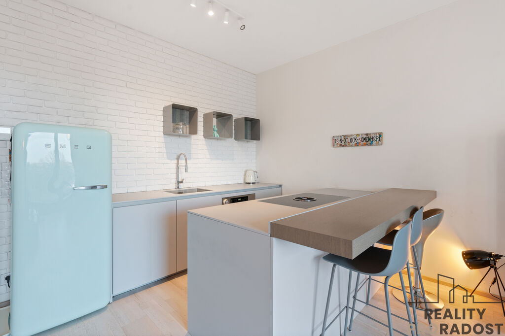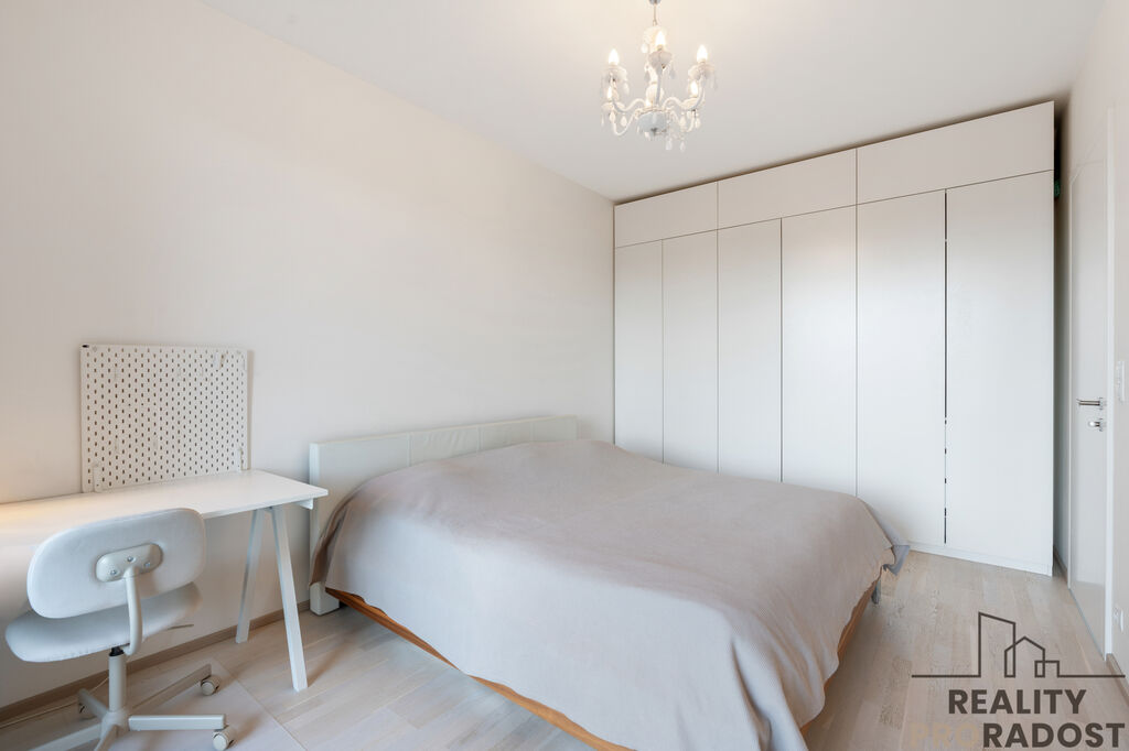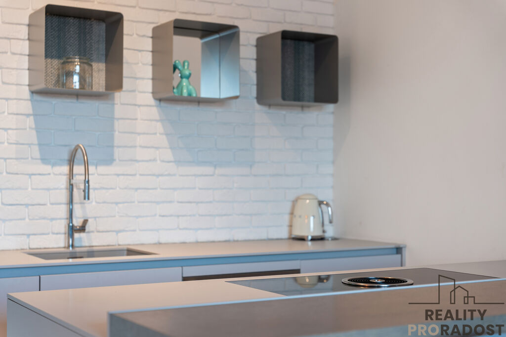 Byt se skládá z prostorné předsíně, světlého obývacího pokoje s designovou kuchyňskou linkou vybavenou moderními spotřebiči (indukční deska s integrovaným odsáváním BORA, trouba Miele, myčka nádobí, lednice Smeg), ložnice s velkou vestavěnou skříní, koupelny s vanou a toaletou, komory s pračkou a sušičkou a balkónu, ze kterého se otevírá krásný výhled na Vltavu.