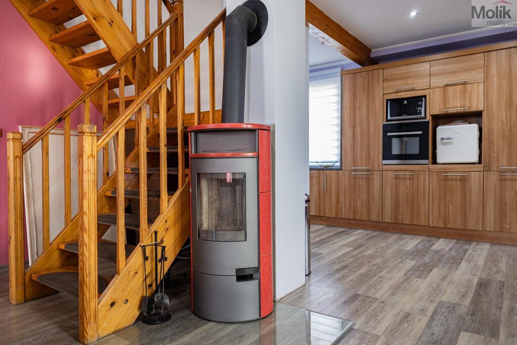 Teplo domova je řešeno přímotopy a krbovými kamny, které pohodlně vytopí téměř celý dům. Dům je napojen na vodovodní řad. Ohřev vody je řešen boilerem.