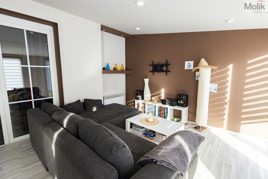 Prostorný, vzdušný a vybavený obývací pokoj s novou pohovkou. Dále vybavená prostorná kuchyň. Technická místnost. Koupelna se sprchovým koutem.