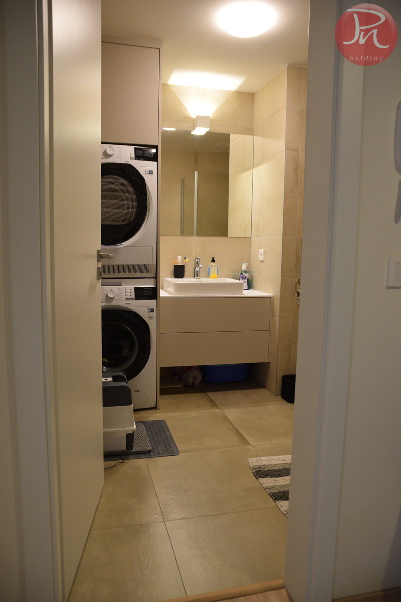 Interiér je světlý, prostorný a navržený s důrazem na moderní design, eleganci a funkčnost. Byt je vhodný pro jednotlivce nebo pár, kteří hledají vysoce komfortní a reprezentativní bydlení v samém centru dění.