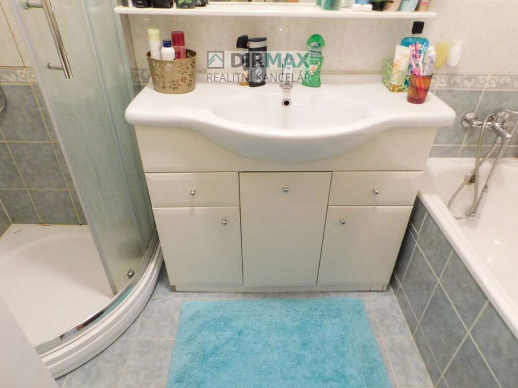 Jádro bytu je zděné s velkou koupelnou a velkou výhodou je, že toaleta je samostatně, tedy odděleně se svým vlastním vstupem. V koupelně je sprchový kout a na druhé straně vana, umyvadlo i skříňky a místo na pračku. Byt má plastová okna, vertikální, moderní žaluzie, obložkové zárubně a dveře, vše v masivu.