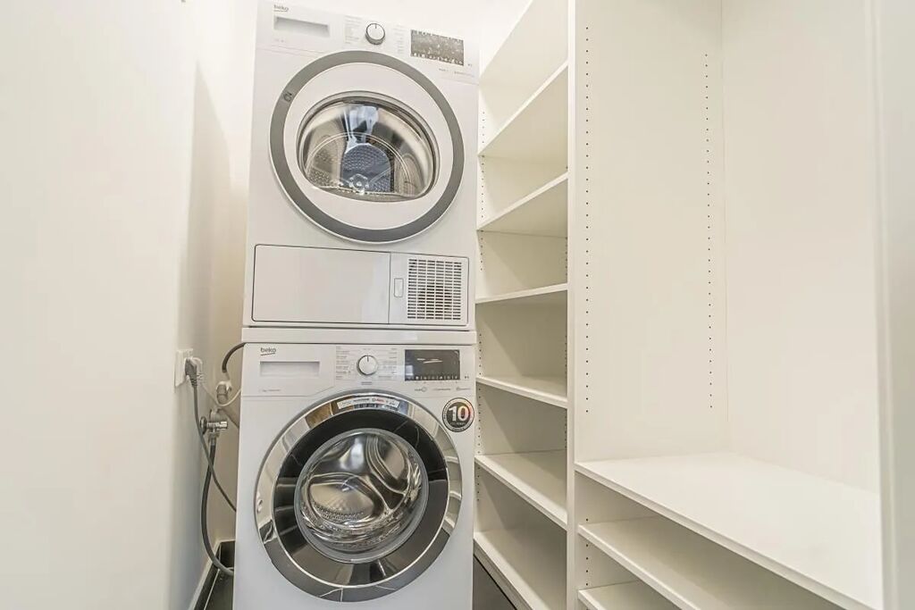 Byt je také vybaven mopem, vysavačem, žehlícím prknem a žehličkou, na oknech jsou instalovány žaluzie a záclony.