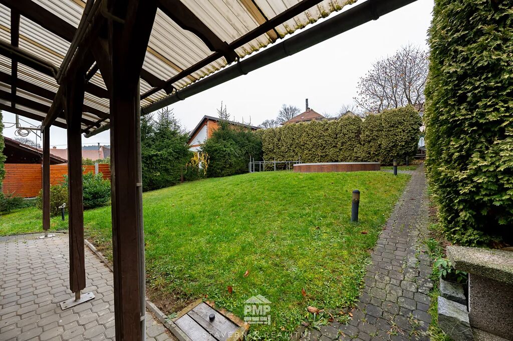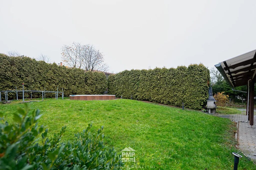 Celková plocha pozemku činí 1.046 m², velikost zahrady činí 783 m². Pozemek je převážně zatravněný a vyžaduje minimální údržbu. Zahrada je rozdělena živým plotem na dvě části – odpočinkovou zónu s terasou, zapuštěným bazénem a okrasnými dřevinami a praktickou část s kůlnou a přístřeškem pro dřevo. Na pozemku je také možnost vybudování parkovacího místa s přístřeškem.