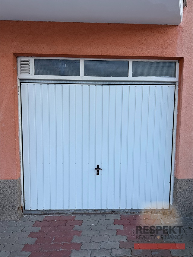 Suchá, odvětrávaná, zděná garáž s kolaudací z roku 2000 má zavedenou elektřinu (230 V, osvětlení, 2 zásuvky) a nově vyklápěcí vrata na dálkové ovládání. Výška vjezdu při otevřených vratech 1,87 m, šířka 2,2 m, výška podlaha- strop 2,57 m. Obvodová zeď je ve vlastnictví SVJ - její údržba je hrazena z fondu oprav.