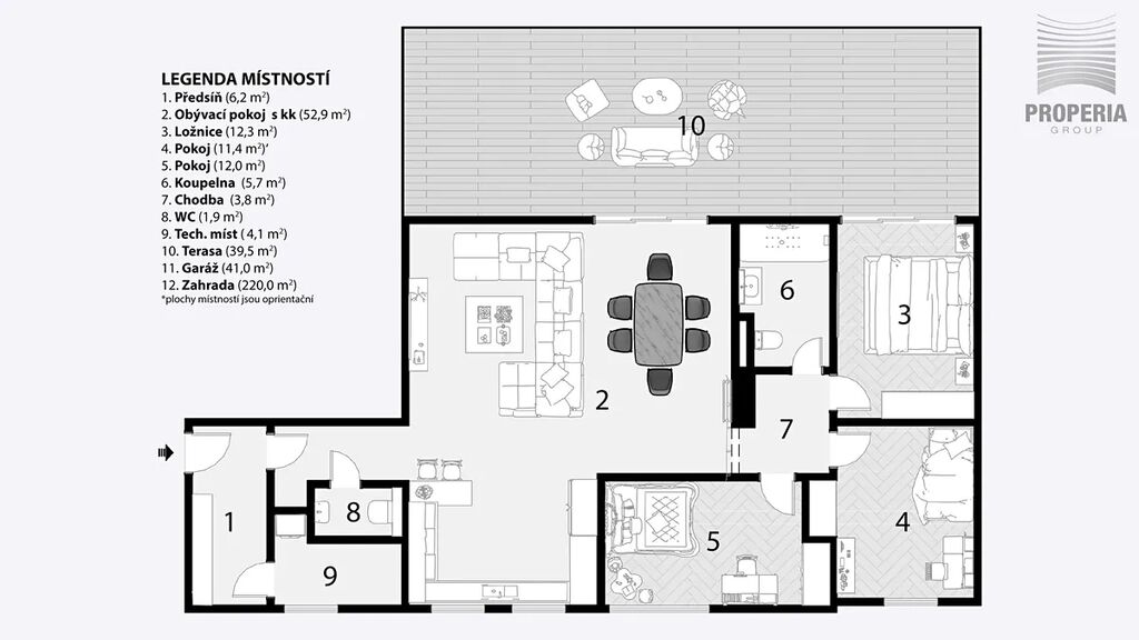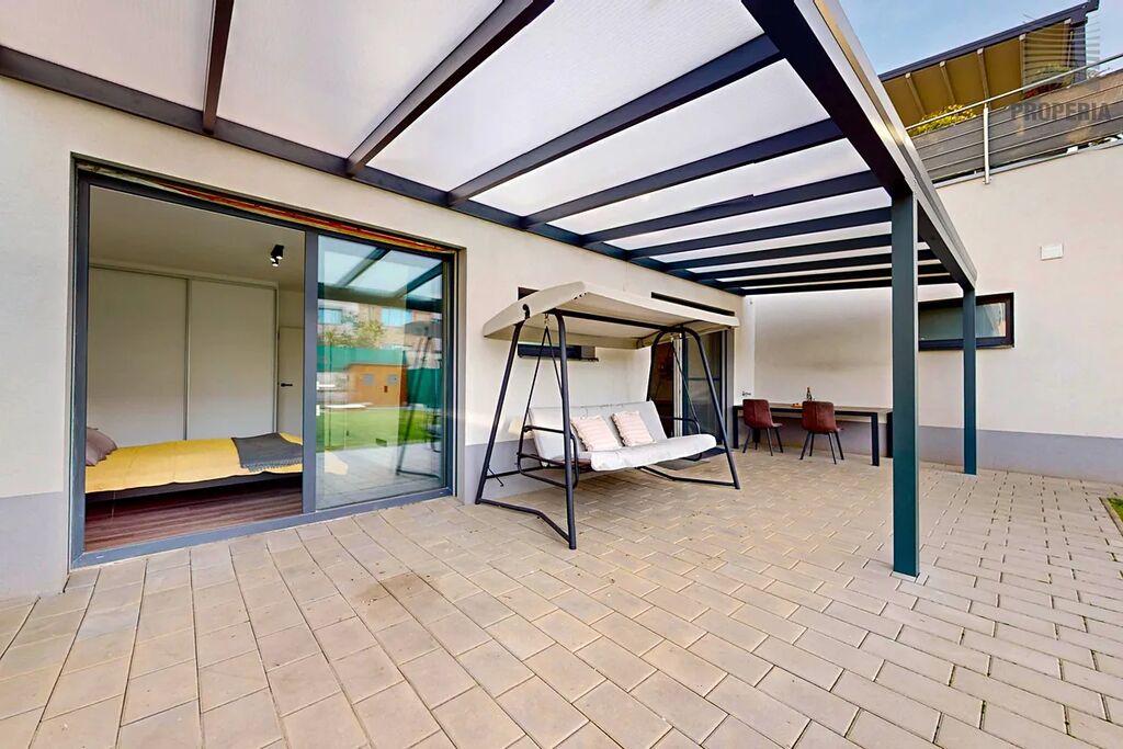 • Velkorysý obývací prostor propojený s terasou a soukromou zahradou (220 m²) – vaší oázou klidu, kde rána začínají světlem zeleně a večery voní po grilování a sdílených chvílích.