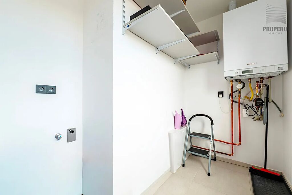 • Plně vybavená kuchyňská linka s vestavnými spotřebiči, technická komora s vlastním plynovým kotlem = nezávislé a úsporné vytápění.