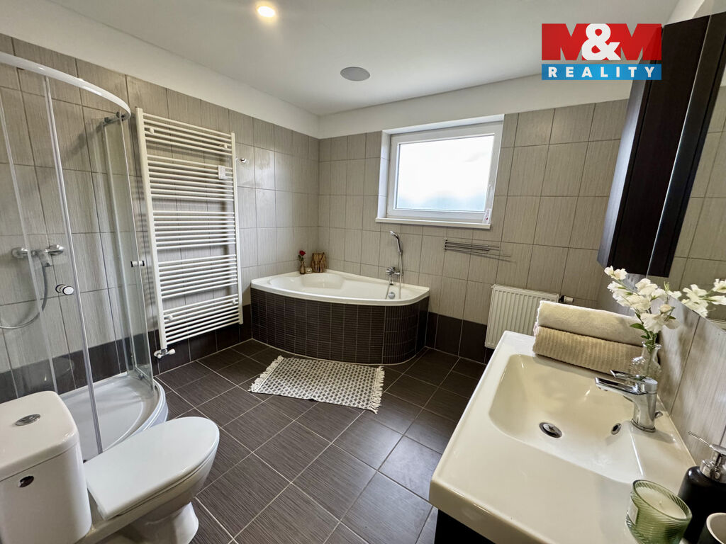 V kuchyňském koutu najdeme moderní linku, která je vybavena vestavěnými spotřebiči. O teplo a nízké provozní náklady se stará plynový kotel, který v kombinaci s krbem a klimatizací zaručuje ideální komfort v každém ročním období.