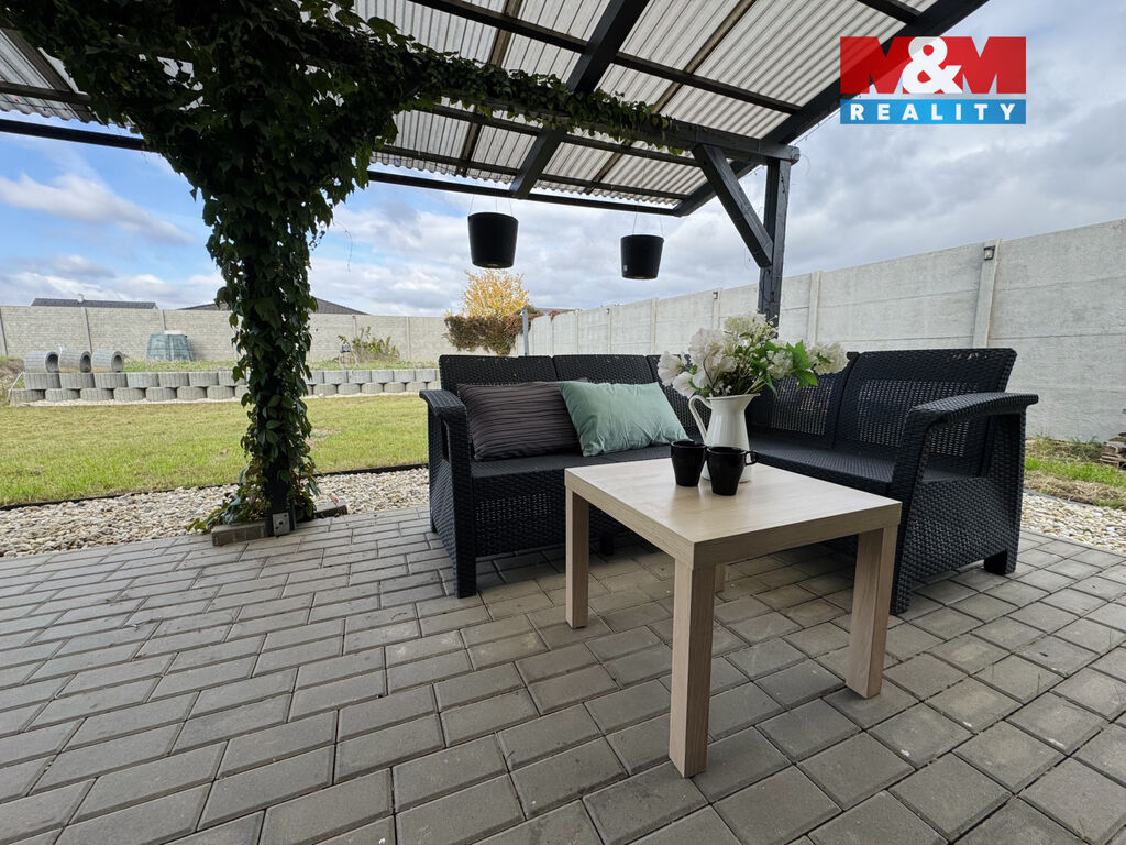 Velká zahrada nabízí dostatek prostoru a maximum soukromí. K relaxaci Vám skvěle poslouží terasa s dřevěnou pergolou a posezením.