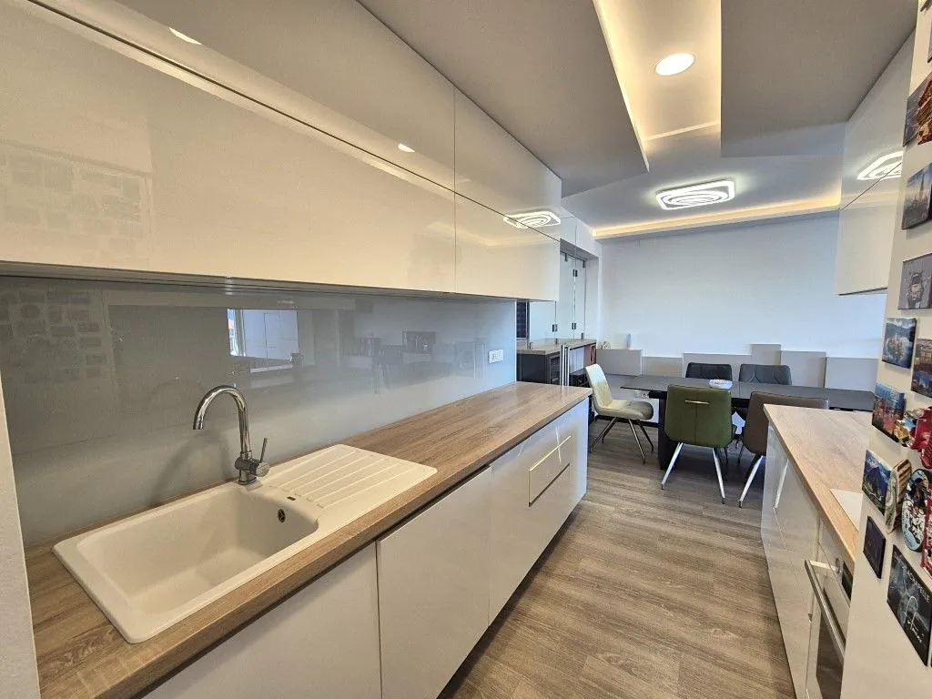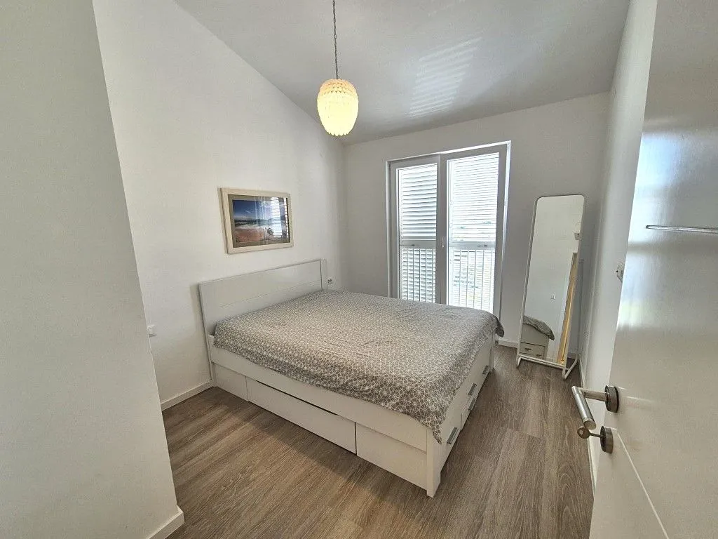 Apartmán byl kompletně zrenovovaný v roce 2020, má moderní vybavení, klimatizaci v každém pokoji a vinylové podlahové krytiny. Náleží k němu 1 parkovací místo na společném parkovišti u budovy. Nemovitost se nachází přibližně 600 m od centra a asi 800 m od moře.