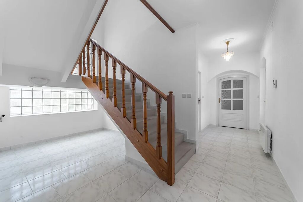 Přízemí: Prostorný obývací pokoj, jídelna, kuchyň, spíž, zimní zahrada s přímým vstupem na terasu, koupelna a technická místnost. Podlahy tvoří praktická dlažba v šedobílém provedení.