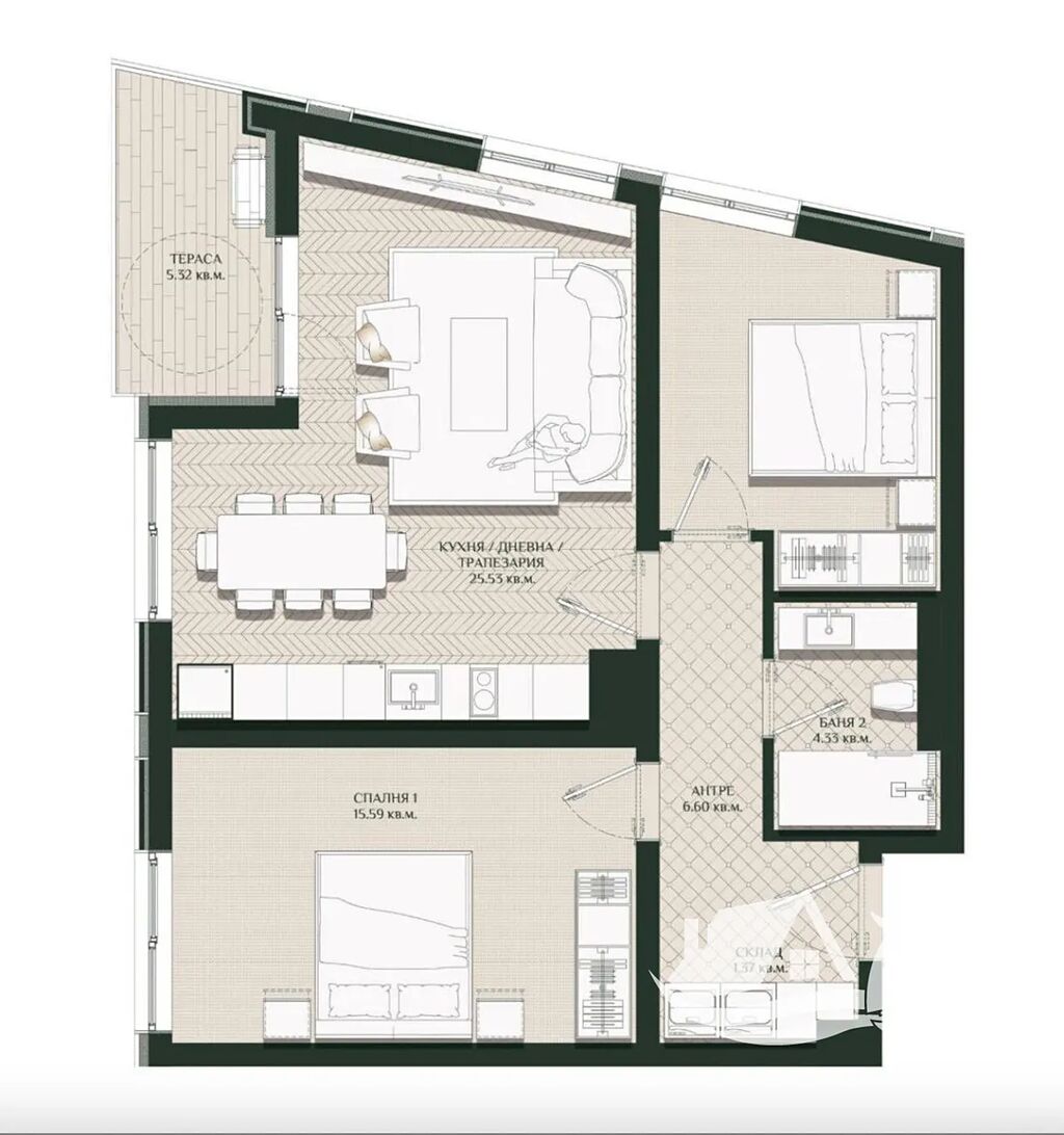 Představujeme vám mimořádnou nabídku – světlý a prostorný třípokojový apartmán o rozloze 95 m² v moderním rezidenčním komplexu Aria 2 v Burgasu. Jedná se o perfektní volbu pro trvalé bydlení, investici nebo budoucí pronájem v rychle se rozvíjející čtvrti Horizont.
