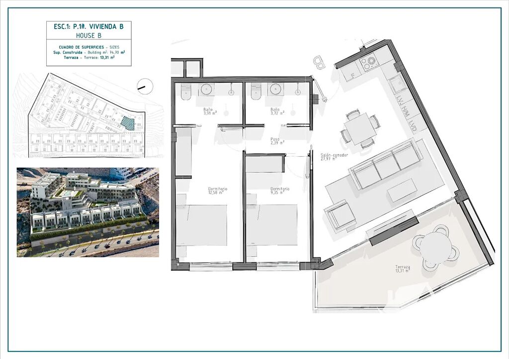 Pláž je vzdálená pouhých 600 metrů – stačí krátká procházka a jste u moře. V bezprostředním okolí najdete obchodní centrum, restaurace, kavárny i veškerou občanskou vybavenost, takže tu snadno strávíte léto i celý rok. Águilas je příjemné přímořské město s dlouhými plážemi, přístavem, promenádou a třiceti pěti plážemi rozprostřenými na 28 kilometrech pobřeží. Krajina je pestrá – od romantických zátok přes přírodní pláže až po městské pláže se službami. Klima je suché, teplé a stabilní, s průměrnými teplotami kolem 22 °C a více než 300 slunečnými dny ročně.