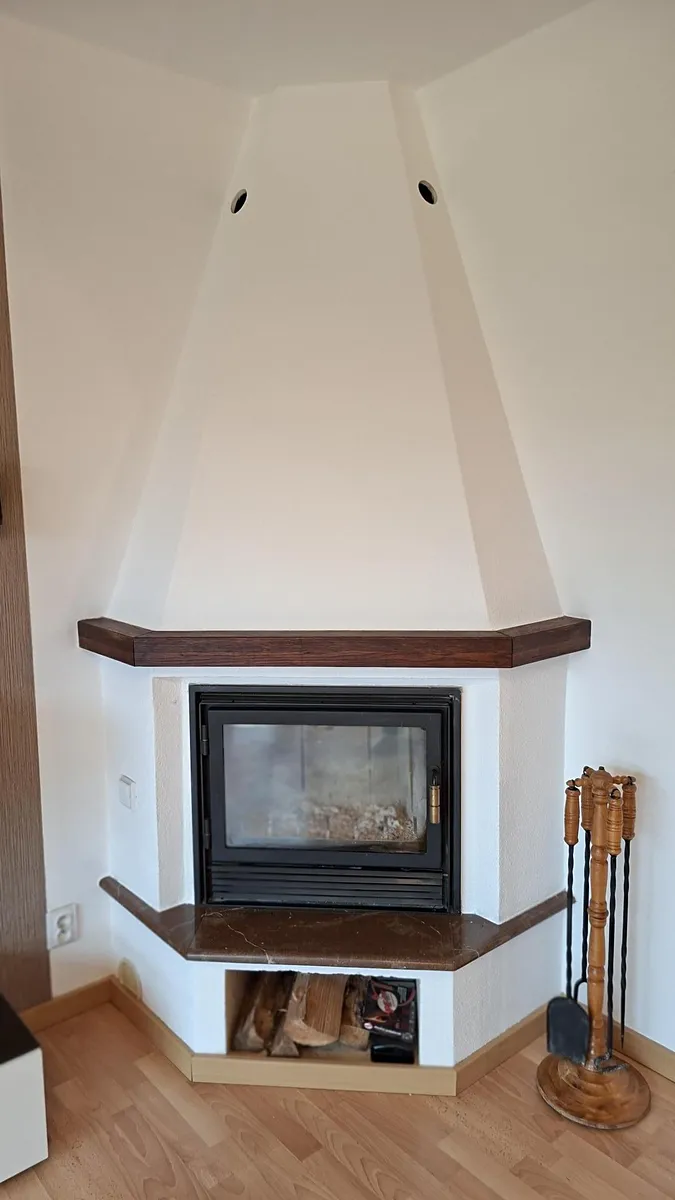 Topení v domě je řešeno plynovým kotlem, v obývacím pokoji je skvělý výkonný krb.