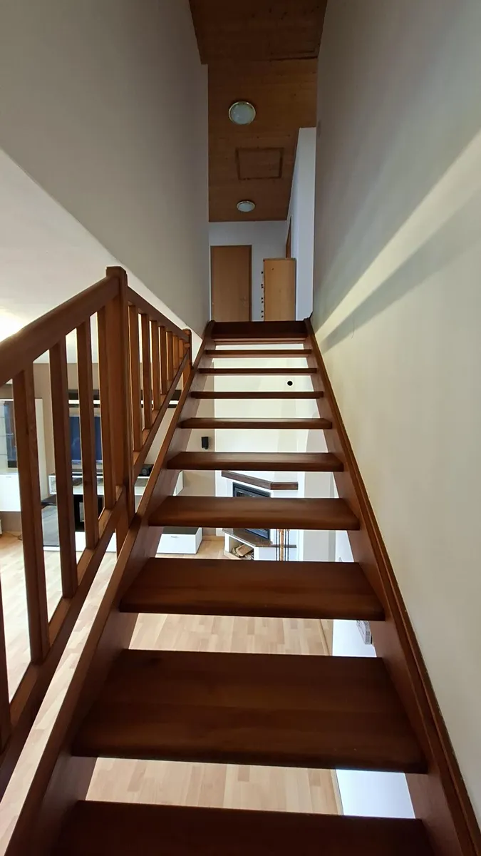 Do horního patra se dostanete z obýv. pokoje po dřevěném schodišti a naleznete zde 5 ložnic (17 m2, 11 m2, 16m2, 10 m2, 10 m2), dvě koupelny, jednu se sprchovým koutem a toaletou, druhou se sprchovým koutem, vanou a toaletou. Dále šatnu 5 m2 a komoru 2,7 m2.