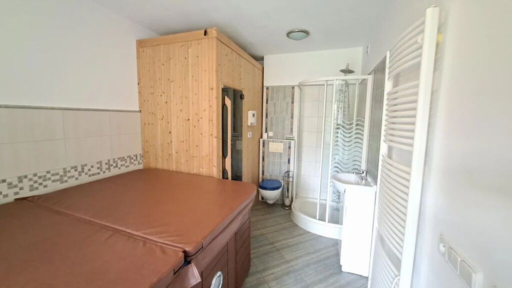 Tento udržovaný dům je nadstandardně vybavený - mj. saunou s mini-fitkem, v některých pokojích je klimatizace. Dům má přistavěnou krásnou zimní zahradu a disponuje velkým množstvím úložných prostor i pro větší rodinu.