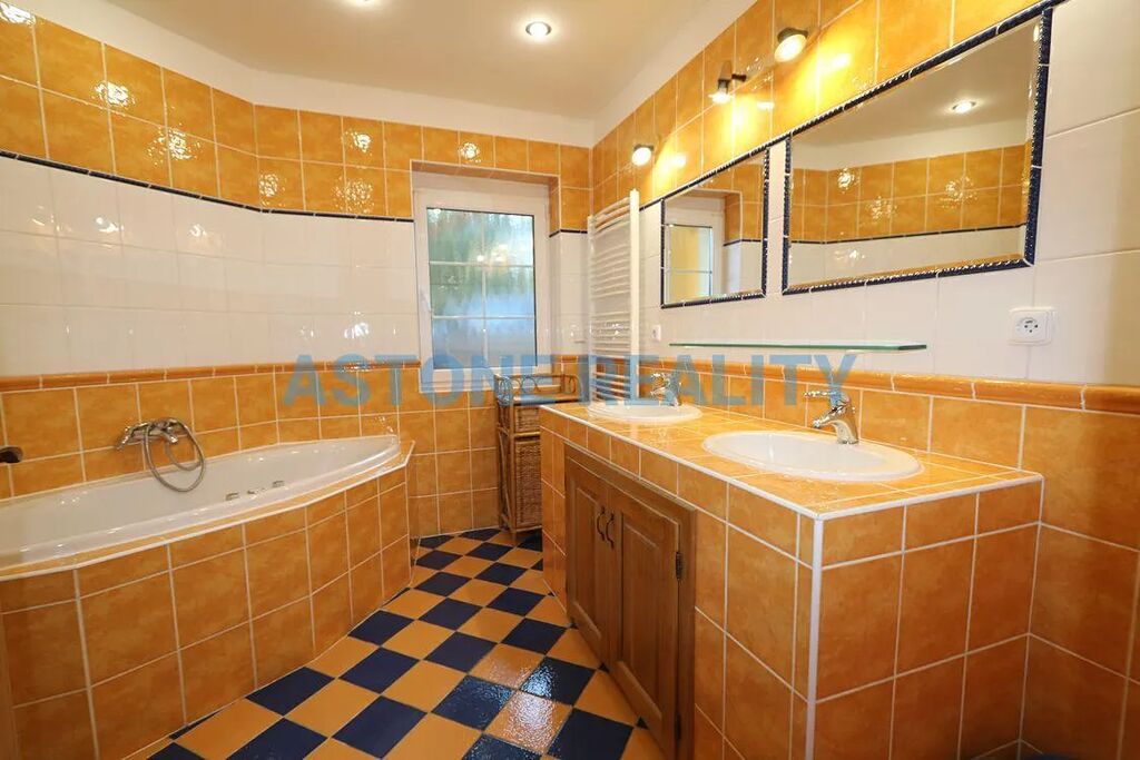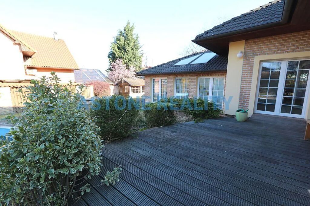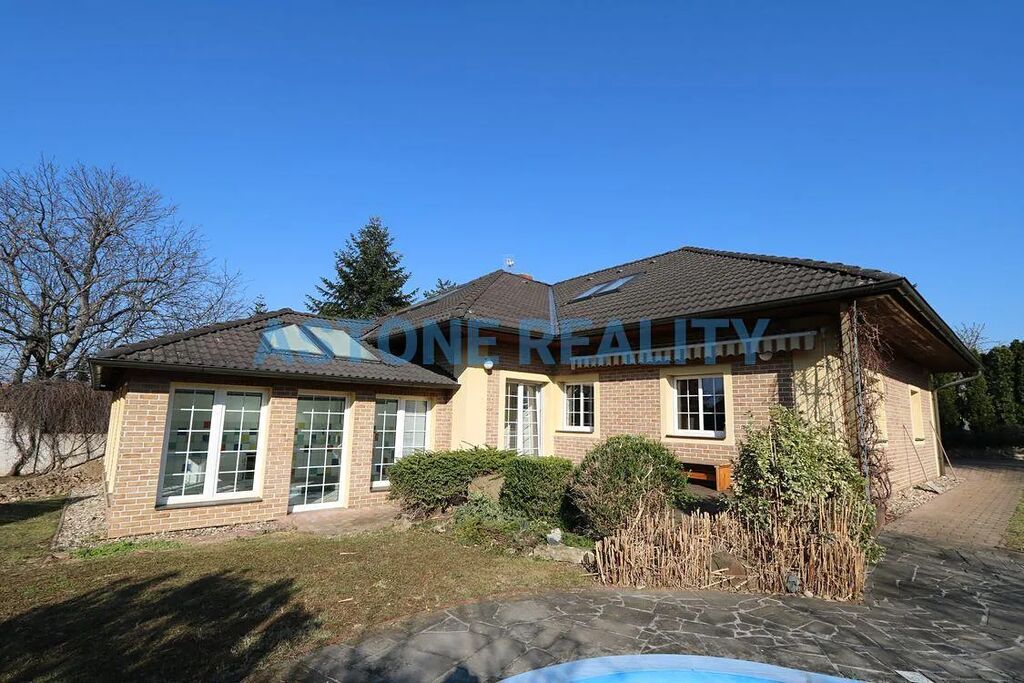 Exkluzivně Vám nabízíme k pronájmu krásný, samostatně stojící dům v Praze 9, Kolodějích, v klidné ulici Kvasinská. Přízemní dům s dispozicí 5+kk o užitné ploše 200 m2 a s dvougaráží 40 m2 se nachází na udržovaném pozemku 750 m2. Dům je nabízen nezařízený. Dispoziční řešení: obývací pokoj s kuchyňským koutem se všemi spotřebiči včetně myčky, jídelní stůl se židlemi, tři ložnice a pracovna. V koupelně rohová vana, sprchový kout, toaleta je zvlášť. Na podlahách dřevěné plovoucí podlahy v kombinaci s dlažbou. K dispozici prostorná relaxační místnost se saunou, sprchovým koutem a toaletou. Dům je napojen na tepelné čerpadlo, které zajišťuje vytápění v celém domě včetně ohřevu venkovního bazénu. V garáži s dálkovým ovládáním je možno parkovat dva vozy, tři parkovací místa jsou před garáží. Výborná dopravní dostupnost, zastávka busu za rohem na metro B Černý Most 15 min. Volné od 5. prosince k nastěhování. V případě zájmu o prohlídku nás neváhejte kontaktovat.