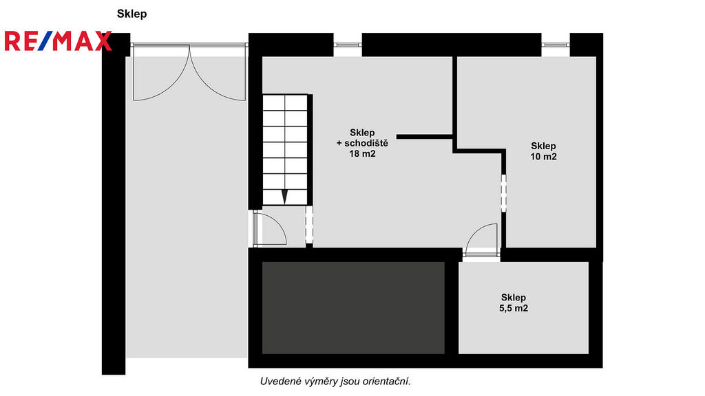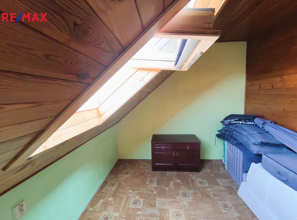 V podkroví se nachází další dva pokoje. Dům je částečně podsklepen prostorným, členěným sklepem, ve kterém je umístěn bojler a kotel. Vstup do sklepa a výstup do podkroví je z průjezdu.