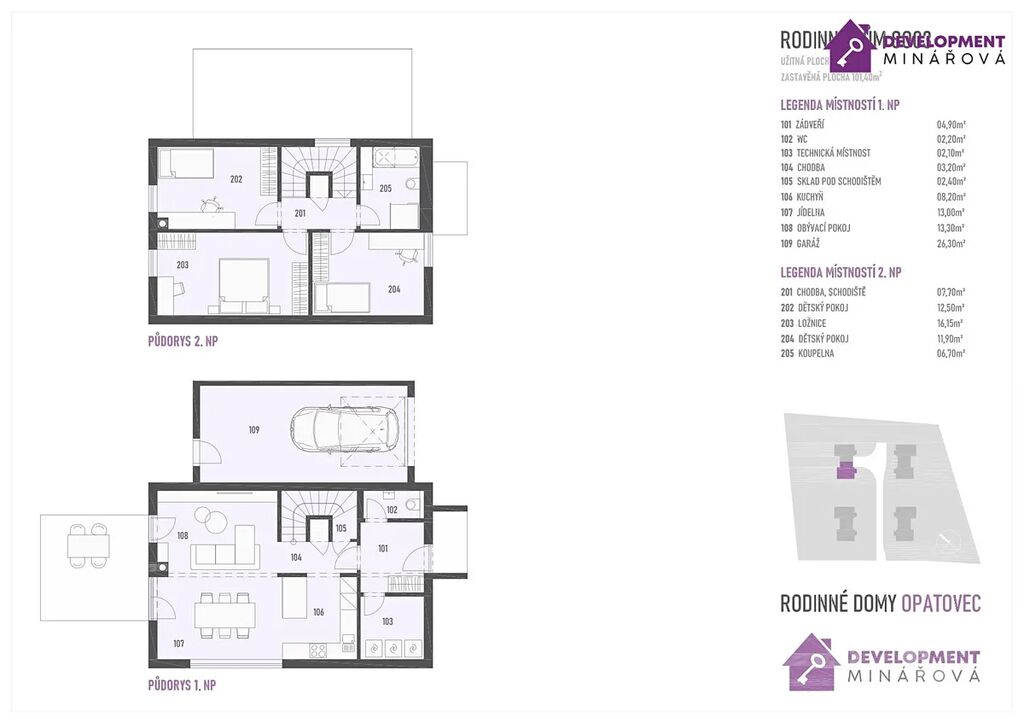 - Dvoupodlažní dům o dispozici 4+kk, užitná plocha 104 m²