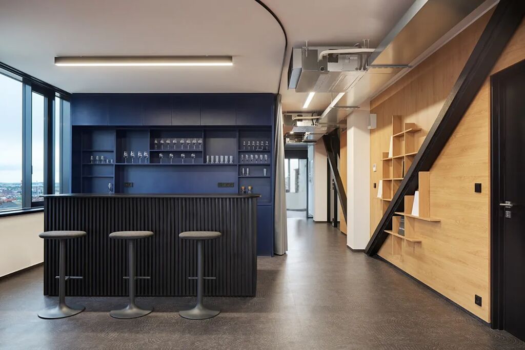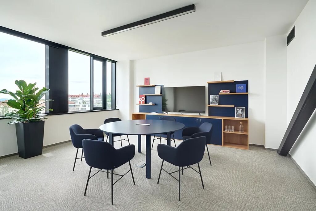 Nadčasově navržený interiér nabízí kombinaci open space kanceláří, samostatných pracovních místností, jednacích prostor, a nechybí ani „Meeting Point“ s kuchyňkou, sociální zařízení a sprchy.