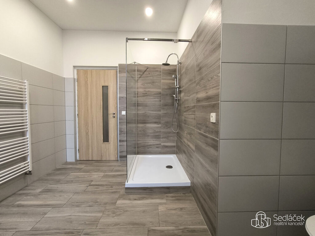 Koupelna je vybavena sprchovým koutem, WC, bidet.