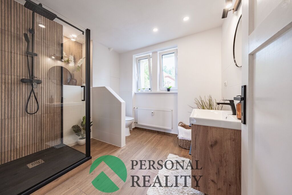 V pokojích jsou renovované parkety, v kuchyni a chodbě vinyl, v koupelně dlažba.