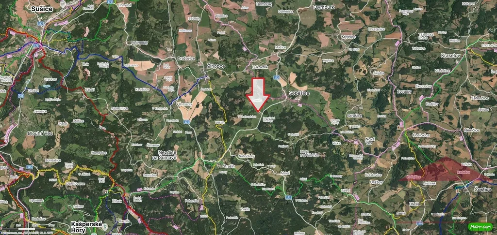 Především malebná a velmi klidná poloha Damíče předhůří Šumavy v nadmořské výšce 700 m, schovaná poloha pozemku v obci a inženýrské sítě na hranici pozemku jsou hlavní přednosti tohoto pozemku v dosahu střediskové obce Soběšice (652 m.n.m.; obecní úřad s poštou a knihovnou; mateřská školka; obchod COOP; hostinec; hotel Pod Hořicí) a dobrém dojezdu do měst Sušice 17 km a Kašperské Hory 13 km, jenž je turistickým centrem v této části Šumavy.