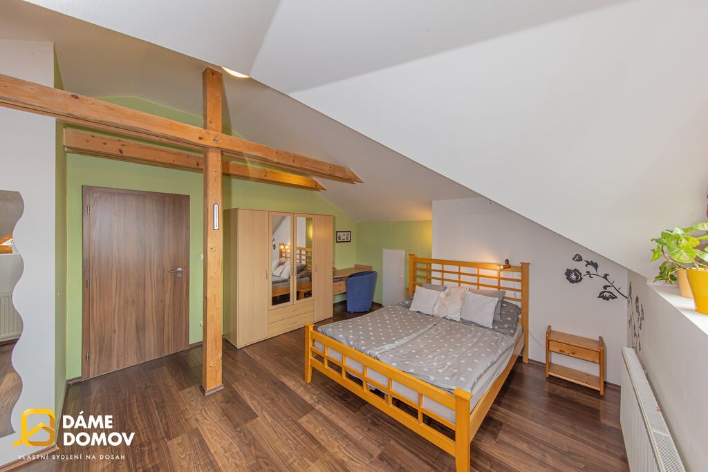 Ve 2. patře se nachází podkrovní byt 4+1 – kuchyň s ostrůvkem, velký obývací pokoj, tři ložnice, šatna, technická místnost a koupelna se sprchou, vanou a WC. Tento byt má samostatný elektroměr a hygienické zázemí.